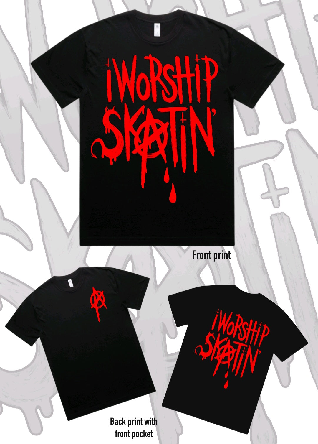 I Worship Skatin Red Anarchy Tee