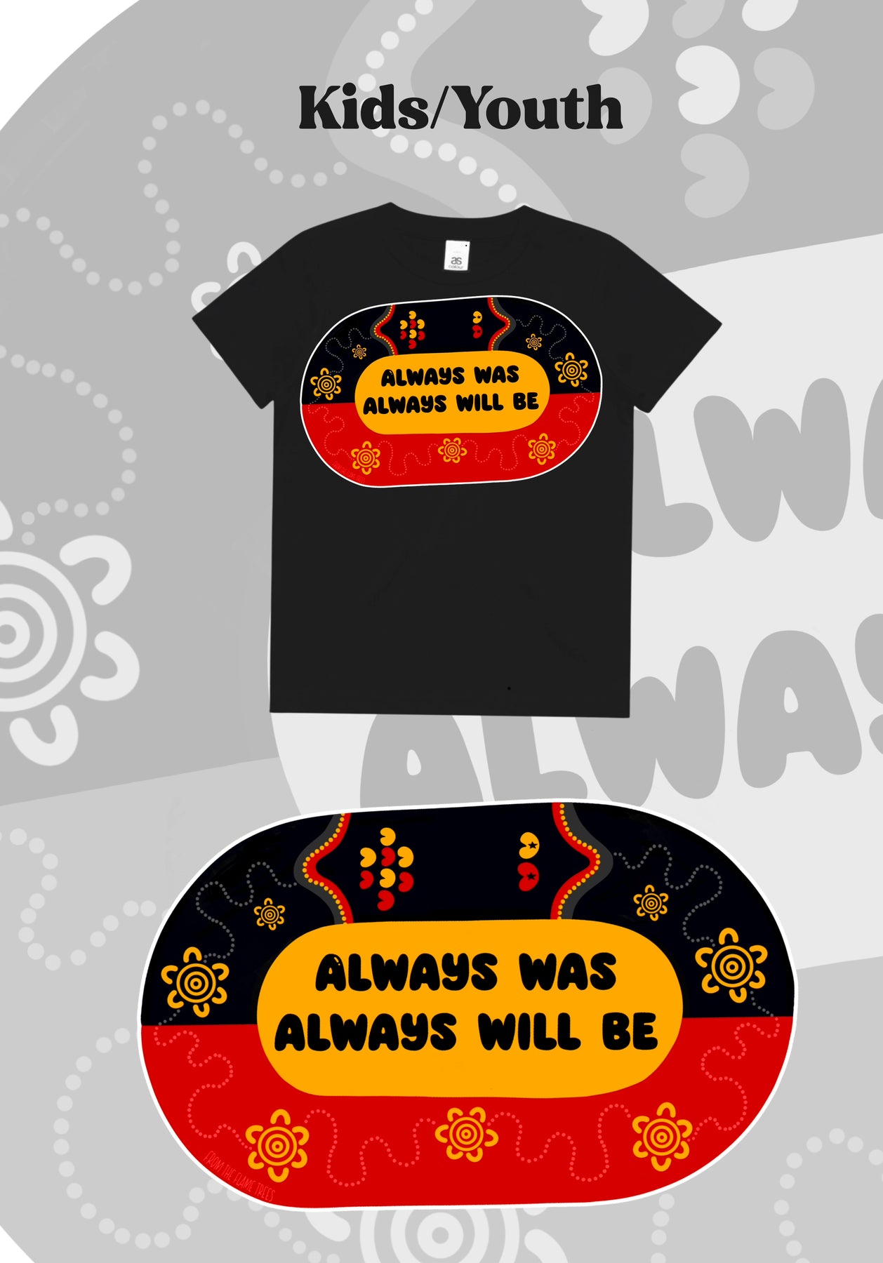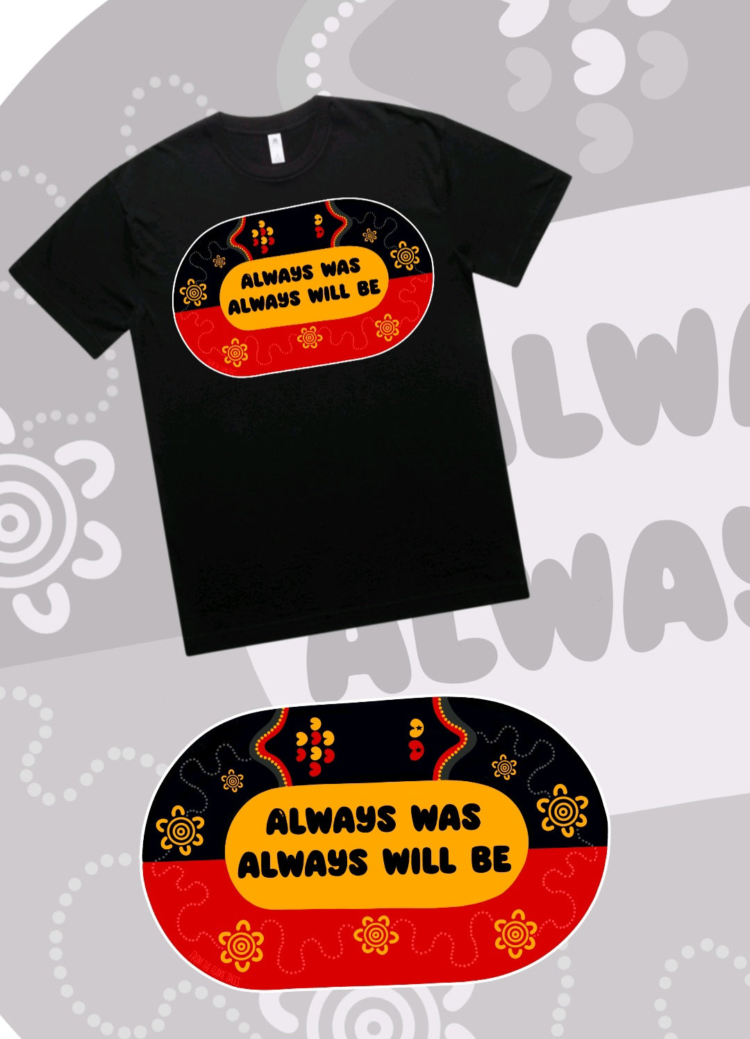 This design features a roller derby track in the colours of the Aboriginal flag - a celebration of culture, community connection to Country, and a tribute to the history of these lands known today as Australia. Created to honour Aboriginal sovereignty, identity and creativity, this tee honours all those who walked on these lands before us, and acknowledges that we are all Skating On Sacred Land.