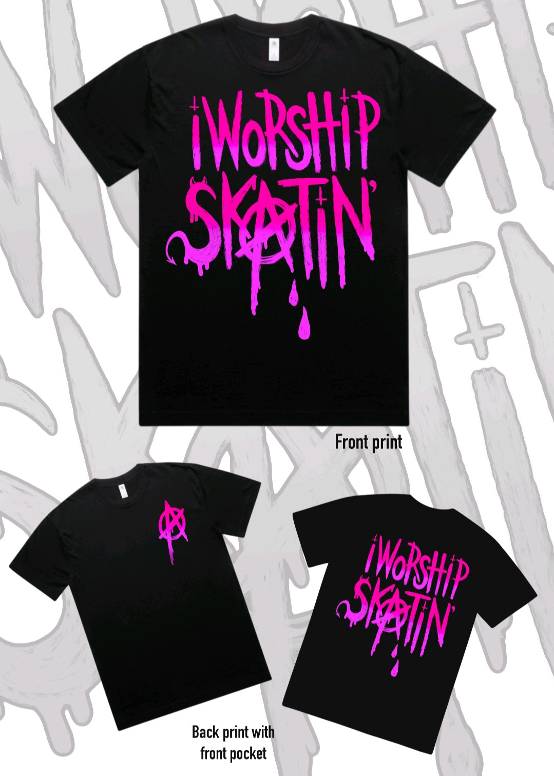 This graphic tee is a gritty ode to the anti-authority roots of skate culture. It's raw, real and made for every kind of skater throughout history: the punks, the queers, the street skaters, rink rats and outsiders who found freedom and family on wheels. It honours the underground scenes that gave skating its soul, reclaiming a culture built by misfits, not corporations.